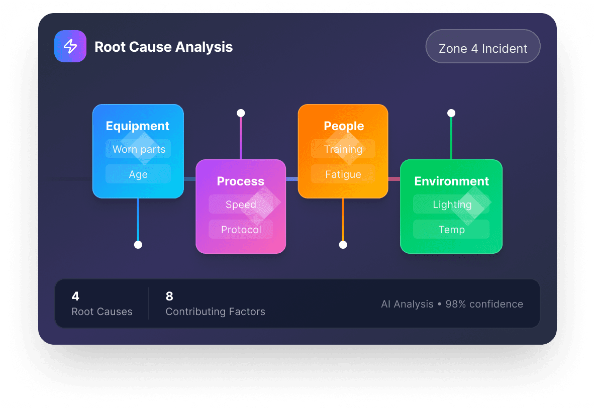 Advanced Root Cause Analysis with multi-threaded reasoning, Five Whys, and Fishbone models. Generates corrective actions with effort and impact scoring.