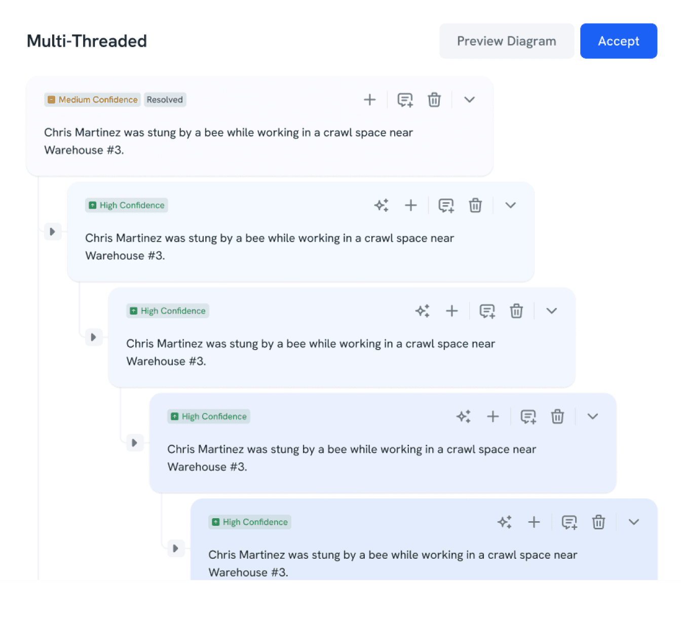 Extracts facts and conditions automatically, reducing investigator variability and ensuring consistency. Compiles everything into a easy to read timeline.