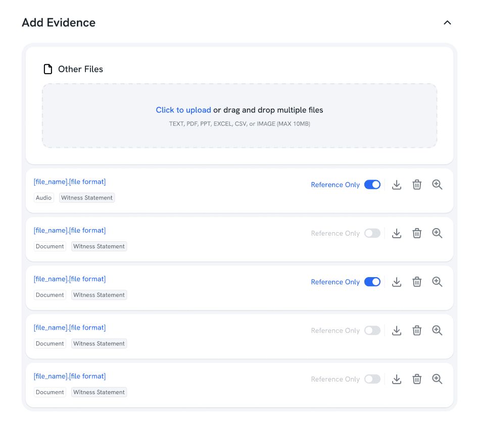 AI-powered processing converts unstructured witness statements, audio, and images into structured, searchable evidence.
